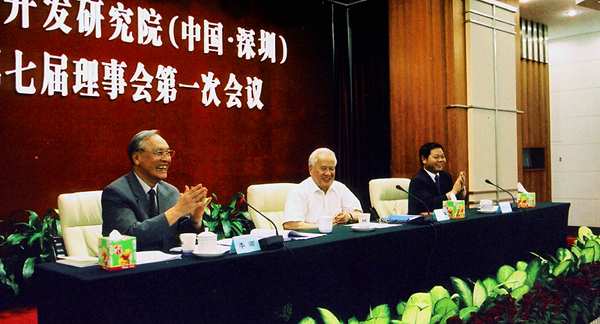 会议听取了高尚全、林凌、郑良玉三位副理事长分别作的理事会工作报告、关于修改章程的说明、关于基金会章程草案和基金会筹备情况的说明。经过与会理事认真审议,会议一致通过了理事会工作报告,批准了章程修订案和基金会章程草案。会议选举产生了新一届理事会的领导机构,决定了研究院新的院务领导班子、学术评审委员会主任、副主任,基金会筹备组人选。原全国政协副主席、中国企业联合会会长陈锦华当选为理事长;著名经济学家樊纲出任院长。广东省委常委、深圳市委书记李鸿忠和深圳市委副书记、市长分别出席会议并讲话,对会议取得圆满成果表示祝贺。