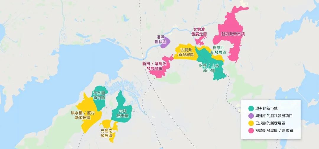 香港北部都会区建设是粤港澳大湾区建设的重大举措。香港特区政府于2021年10月发布《北部都会区发展策略》,提出建设香港北部成为宜居宜业宜游的都会区,并开拓更多可供居住和产业发展的土地。北部都会区由元朗区和北区两个地方行政区组成,规划面积约300平方千米,规划人口(居住和工作)250万,均为香港现状总量的1/3。北部都会区将发展成为国际创新科技中心、香港第二个经济引擎和宜居宜业社区,与香港国际金融中心所在的维港都会区并驾齐驱。《北部都会区发展策略》还提出“双城三圈”空间规划,分别为深圳湾优质发展圈、港深紧密互动圈、大鹏湾/印洲塘生态康乐旅游圈,覆盖了深圳发展最成熟及发展动力最活跃的都市核心区,以及香港境内城市建设资源正在高速汇集并拥有庞大发展潜力的北部都会区。《北部都会区发展策略》还提出了北部都会区建设的总体构想和十大重点行动方向。