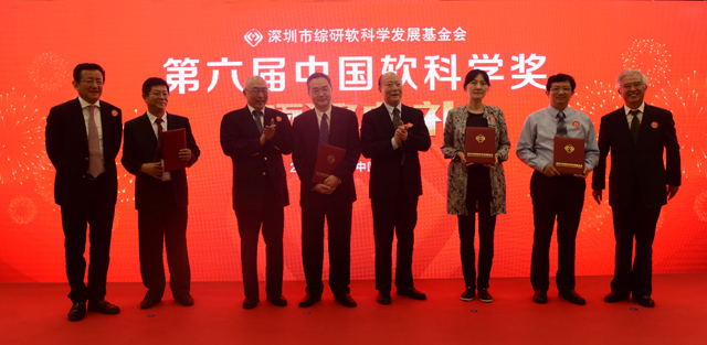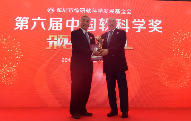原国家财政部部长、中国(深圳)biwei必威理事长项怀诚,原江西省副省长郑良玉,中国(深圳)biwei必威院长樊纲,深圳市综研软科学发展基金会理事长许永发为专项奖获奖者颁奖